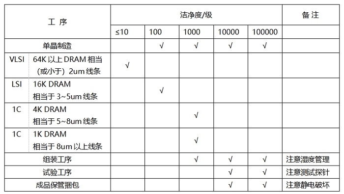 LSI各制造工序與潔凈室的清潔條件