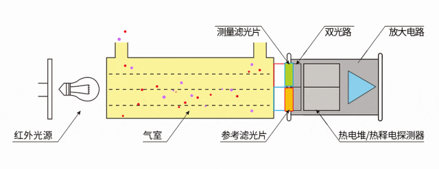 綜上,在封閉室內需要實時監(jiān)測二氧化碳濃度,防范室內缺氧。NDIR技術檢測二氧化碳具有抗氣體交叉干擾,檢測精度高的優(yōu)勢。因其檢測原理是基于氣體分子在特定紅外波段的吸收特性,在二氧化碳的紅外吸收光譜中,選擇4.26μm進行檢測,氣體吸收率最高,紅外輻射衰減顯著且水汽吸收率較低。