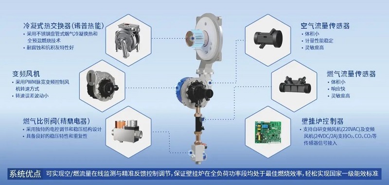 四方光電還推出了ACS智能燃燒系統(tǒng),集成了其控股子公司的燃?xì)獗壤y(精鼎電器)、冷凝式熱交換器(諾普熱能),與四方光電超聲波燃?xì)饬髁總鞲衅?、空氣流量傳感器,配合離子感應(yīng)電機和高調(diào)節(jié)比文丘里,可實現(xiàn)空/燃流量在線監(jiān)測與精準(zhǔn)反饋控制調(diào)節(jié),保證壁掛爐在全負(fù)荷功率段均處于最佳燃燒效率,輕松實現(xiàn)國家一級能效標(biāo)準(zhǔn)和環(huán)保要求。