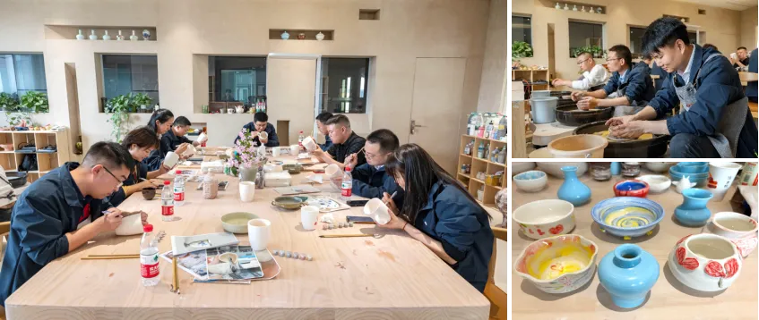 參觀結(jié)束后,管理團隊在公司技術(shù)中心陶藝工作室體驗了揉泥、拉坯、畫胚等傳統(tǒng)制陶工序,親手制作陶器,切身感受中國陶瓷文化魅力。