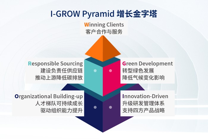 基于對(duì)行業(yè)趨勢(shì)與利益相關(guān)方訴求的深度洞察,公司創(chuàng)新提出ESG戰(zhàn)略“I-GROW增長(zhǎng)金字塔”,系統(tǒng)梳理出研發(fā)創(chuàng)新驅(qū)動(dòng)、人才生態(tài)構(gòu)建、可持續(xù)供應(yīng)鏈建設(shè)、綠色低碳轉(zhuǎn)型、 客戶(hù)價(jià)值深化五大關(guān)鍵實(shí)質(zhì)性議題,以實(shí)際行動(dòng)向社會(huì)展示出做好ESG的決心,為公司可持續(xù)發(fā)展注入新動(dòng)能。