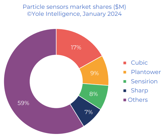 22年前誕生于武漢,但今天的四方光電,早已參與到國(guó)際競(jìng)爭(zhēng)中。目前四方光電的PM傳感器,在民用空氣凈化器、汽車凈化系統(tǒng)、網(wǎng)格化顆粒物監(jiān)測(cè)物聯(lián)網(wǎng)等領(lǐng)域?qū)崿F(xiàn)大規(guī)模配套,根據(jù) Yole Intelligence發(fā)布的《Gas and Particle sensors 2024》,公司的激光PM傳感器產(chǎn)品在全球市場(chǎng)占有率排名第一,真正實(shí)現(xiàn)了單一品種國(guó)際市場(chǎng)的“隱形冠軍”。
