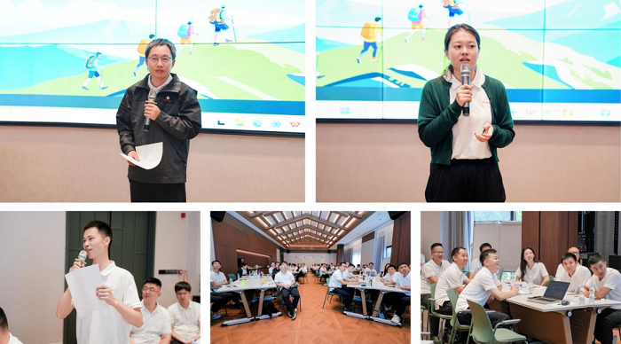 出征儀式后,8支隊伍整裝出發(fā),向武功山金頂進發(fā)。陡峭的山路考驗著體力,面對“心有千千結(jié)”、“穿越1.6米封鎖線”等團隊挑戰(zhàn),隊員們默契協(xié)作、集思廣益,以智慧和凝聚力逐一突破難關(guān)。最終,各團隊在規(guī)定的時間內(nèi)順利抵達金頂。6月6日晚在金頂露營區(qū),參訓人員結(jié)合白天徒步訓練中的協(xié)作實踐,通過案例分享、互動研討等形式開展當日復(fù)盤總結(jié)?,F(xiàn)場討論熱烈,管理智慧在思想碰撞中持續(xù)升華,為團隊迎接未來發(fā)展挑戰(zhàn)凝聚了共識與力量。