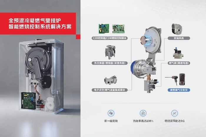 搭載智能控制算法,熱效率高達(dá)108% ,燃燒調(diào)節(jié)比達(dá)9:1 ,可根據(jù)實(shí)際用熱需求動(dòng)態(tài)調(diào)整燃燒狀態(tài),在保障供暖供熱穩(wěn)定性的同時(shí),大幅降低燃?xì)庀?,助?“雙碳” 目標(biāo)實(shí)現(xiàn)。