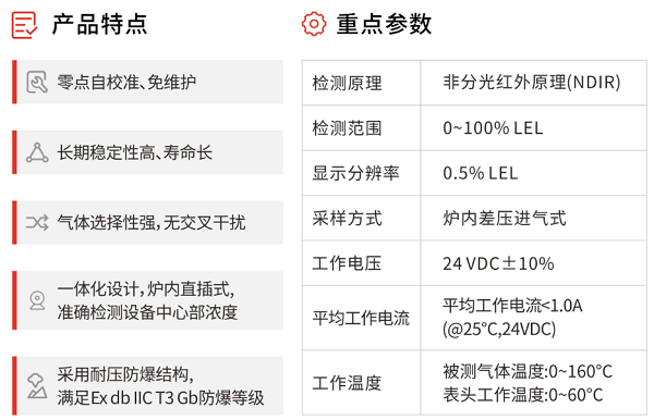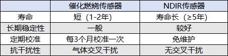 催化燃燒檢測是氣體接觸催化劑后引發(fā)無焰燃燒,燃燒加熱測溫絲,通過檢測測溫絲的電阻值變化,計算氣體濃度,原理決定了其壽命短、長期穩(wěn)定性差等問題。