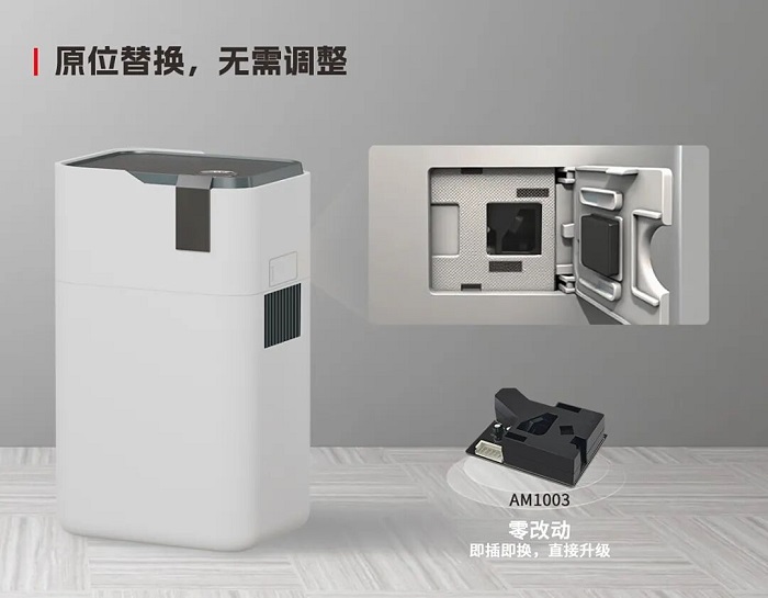 基于現(xiàn)有的PM1003 產(chǎn)品方案,可以“零改動”切換到AM1003??蛻艏饶芸焖傺a齊VOC檢測功能,又能降低升級風(fēng)險和時間成本,加速產(chǎn)品迭代。